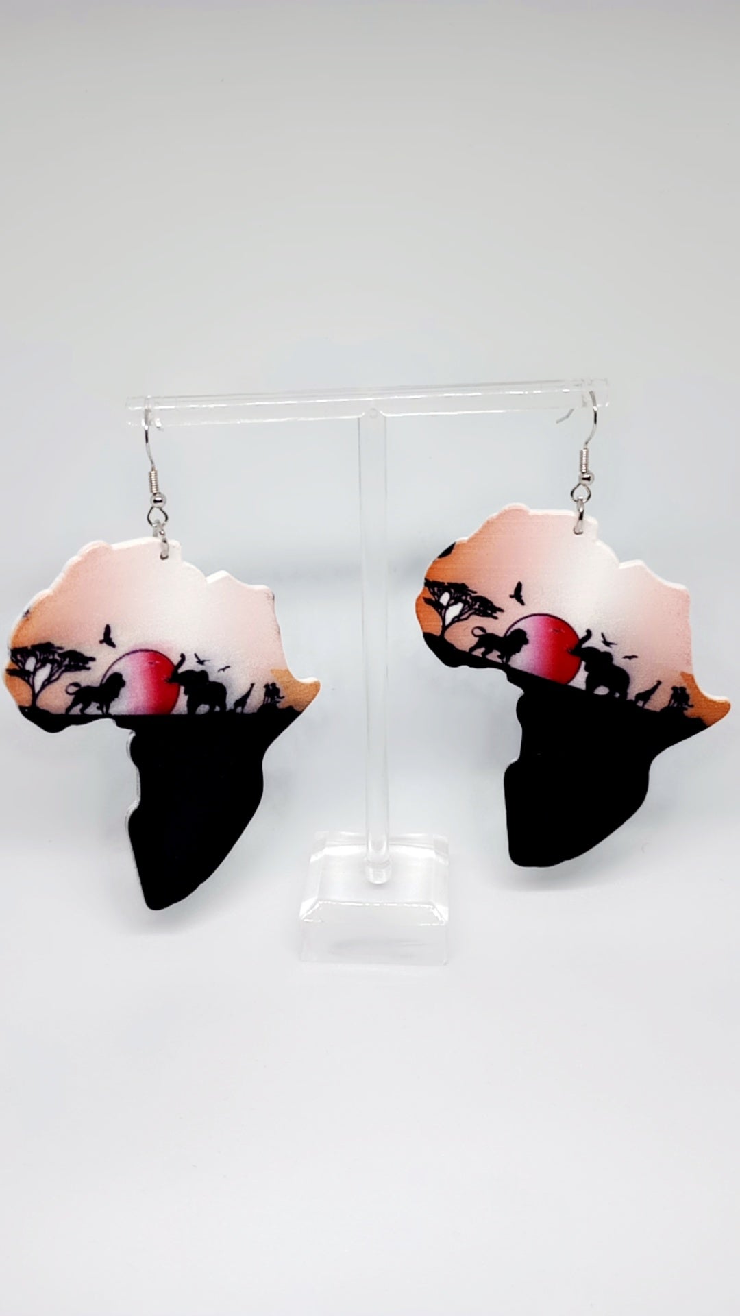 Wooden african shaped earrings with the animals on the horizon